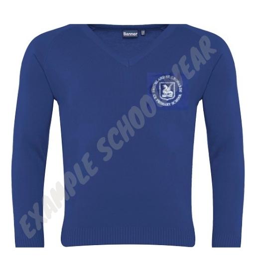 This Very smart V-Neck jumper is to wear under your child’s Blazer with the School Logo on the Left breast.